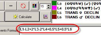 Our "Solar Indicator" is almost done; we need to consider just one more thing. According to the classical approach, the strongest aspect is conjunction, so it would be good to record that the voices of conjunction singers are louder than others. In order to do that, modify the formula this way and click "Calculate":
