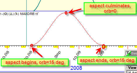 After calculation you will get the diagram that shows how this aspects appears in time:
