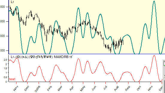 You see this indicator looks much more interesting: there are moments when the Sun aspects several planets, and it makes this curve more irregular: