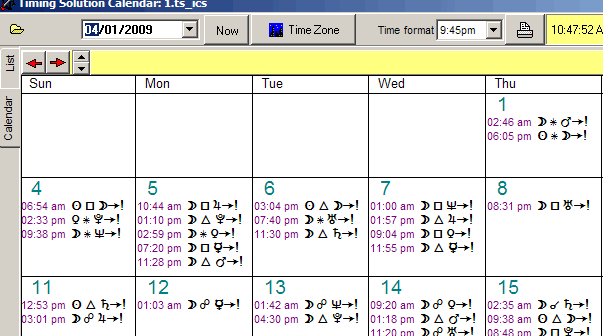 Next day you can browse this calendar running TS Calendar as a stand alone program through "Timing Solution" folder: