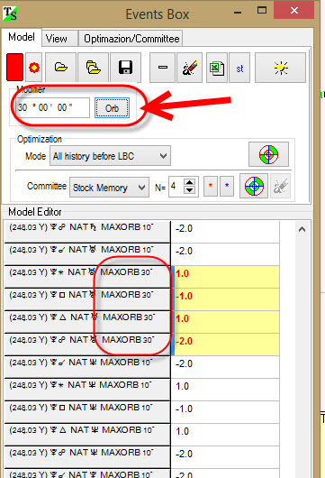 You can also change the orbs for analyzed aspects. In order to do that, you need to highlight the events, type the orb that you plan to set for highlighted events and click "Orb" button: