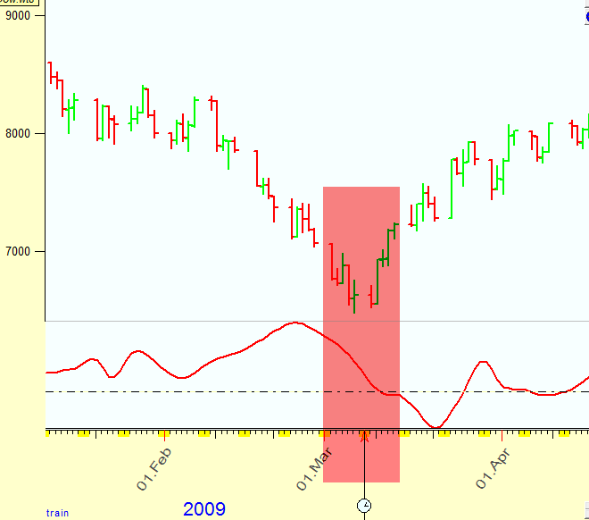 Let\s say that you see some discrepancy between your projection line and the price in the beginning of March 2009; your model "does not see" the bottom that has been formed at this time: