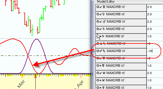 You may decide that this aspect plays important role in that bottom (it is strong enough, coincides with the bottom though it is reversed, other considerations). Thus, to describe this bottom, assign a big negative weight for this aspect. I made it as "-10" ("-" because it is reversed). See how the projection line has changed: