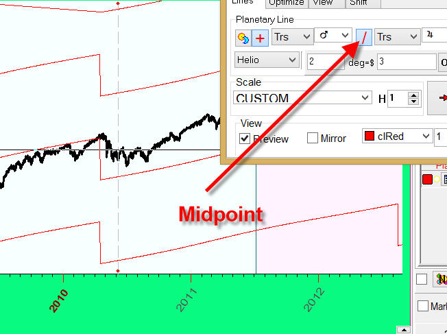 Clicking this button you can calculate the planetary lines based on Mars/Jupiter midpoint: