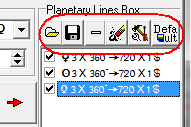 These buttons allow to save these lines into the file (and read them), to remove any line from the Planetary Line Box, set the color and thickness for any of these lines: