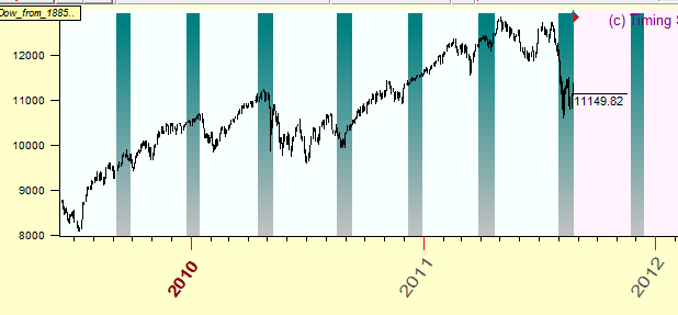 These period represent 116 day Mercury phase cycle. The idea of this approach is very simple: we calculate Annual cycle using only a portion of the price history. For our example, we analyze only those periods of time when Mercury was retrograde. All other parts of price history data (when Mercury was direct) are not used in the calculation of this variation of the Annual cycle.