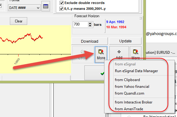 If you plan to download the price history from eSignal, clipboard, Yahoo ... click "More" button: