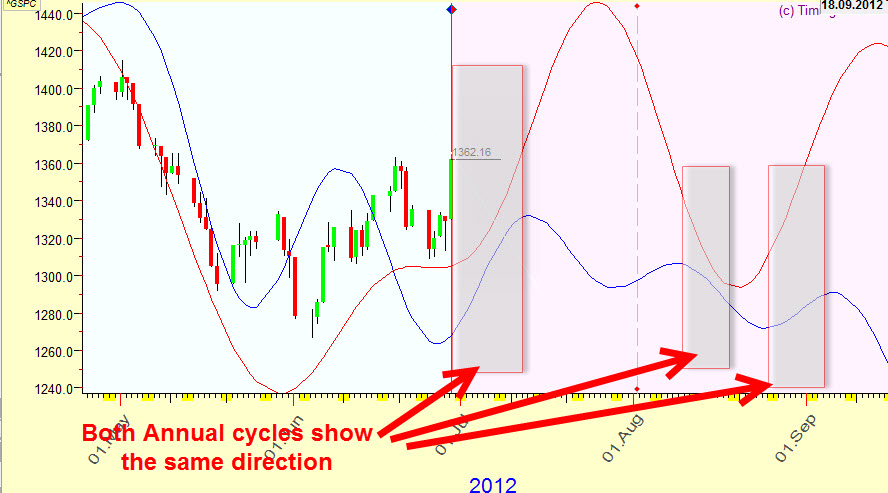 The probability of the price actually moving in that direction is higher when both Annual cycles go the same way.