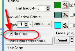 BTW, sometimes the situation like the one described further takes place: we calculate Annual+Decimal cycle in December 2012, so the program calculates the Annual cycle for XXX2 decimal, and we need to calculate Annual+Decimal cycle for the next year 2013, i.e. Annual cycle for XXX3 decimal pattern. In order to do that set "next year" option ON: