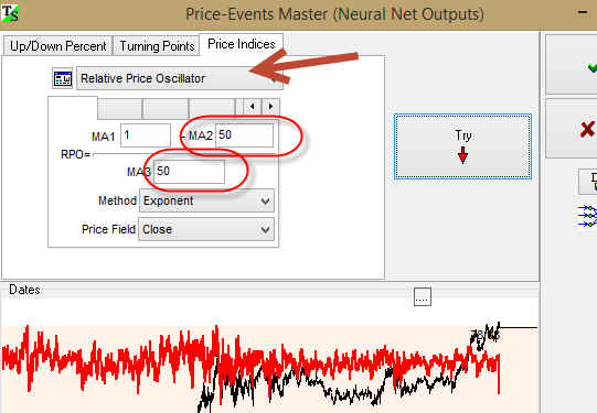 In this case it is better to use relative price oscillator as the output for Neural Network: