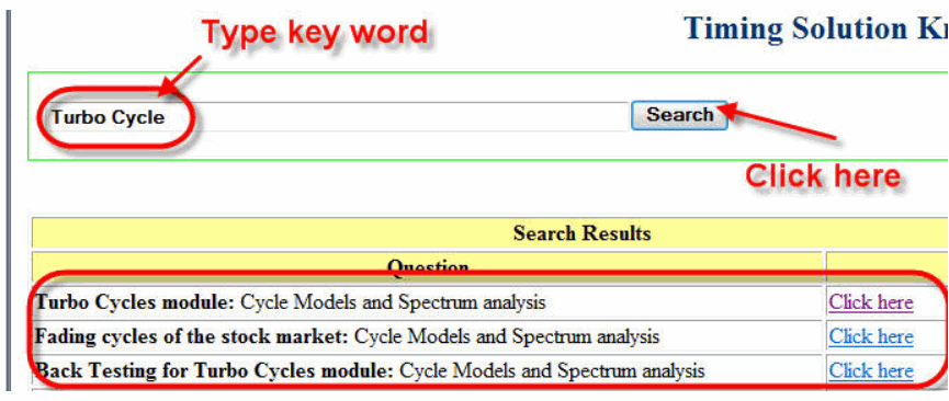 Type there a key word related to your question. It could be a name of the module of the program or any stock market related issue. Type it there and click on "Search" button. You will have a list of articles on the website related to your theme:
