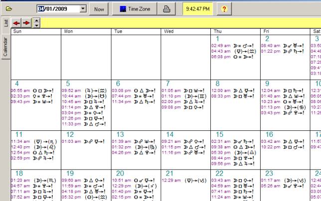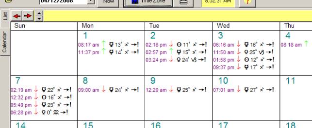 Here the program performs the statistical analysis of astrological events to figure out how these events affect some financial instrument. The program displays the effect of the most significant Astro events for the day � the time and how this event most likely affects the price (upward arrow means that the price tends to go up, while the downward arrow indicates that the price tends to go down).