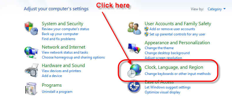 Step #1: Start -> Control Panel (if "Clock and Region" item presents there, click it)