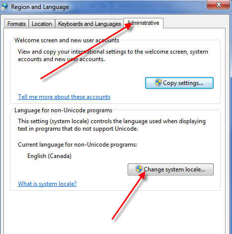 Step #4: Language for non-Unicode programs section click "Change system localization" button