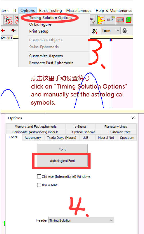 After the Chinese system is set up, reset it when reopening TS. Then click on "Timing Solution Options" and manually set the astrological symbols.