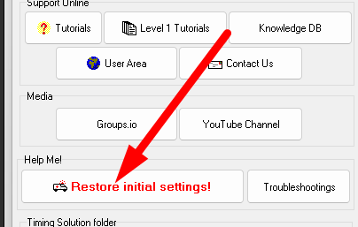 b) Run Timing Solution front program and restore intitial setting clicking this button: