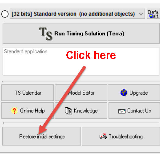 2) Run Timing Solution front program and click "Restore Initial settings" button there:
